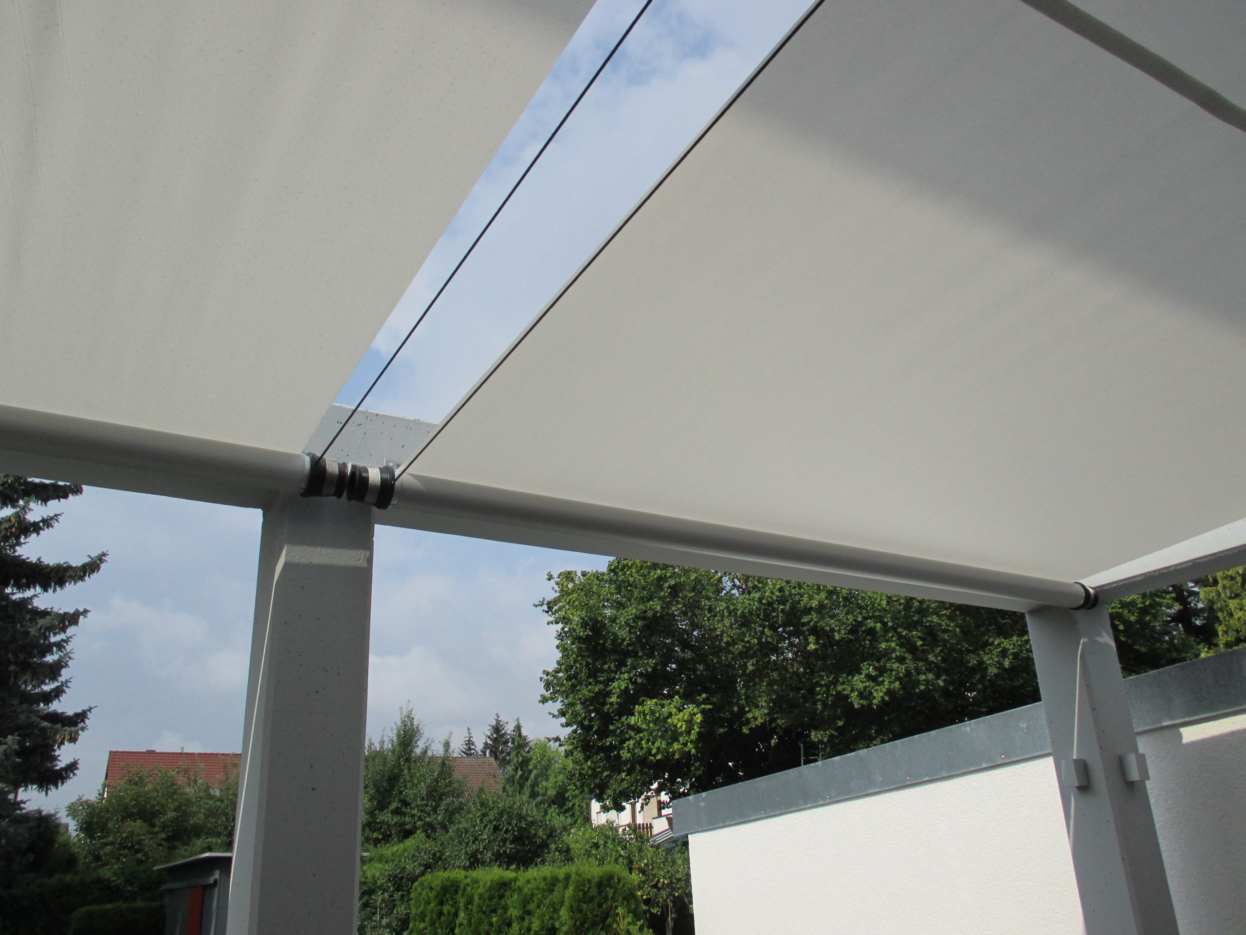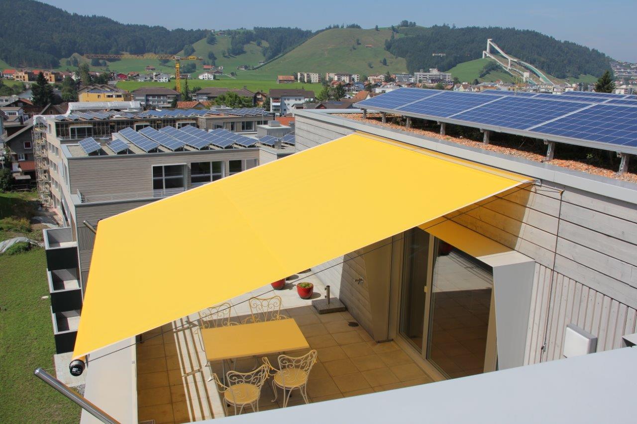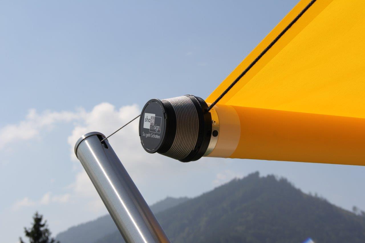Das SHADE verbindet die elegante und leichte Ausführung eines Sonnensegels mit den Vorteilen eines aufwendigen Markisensystems.